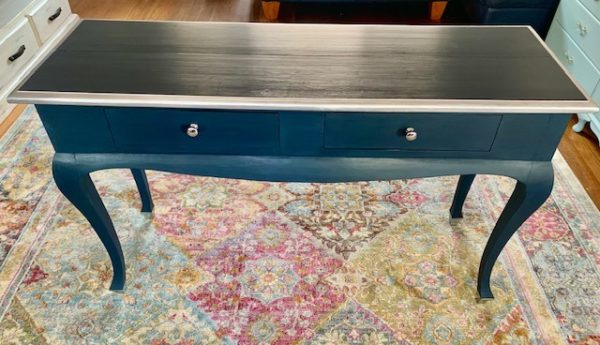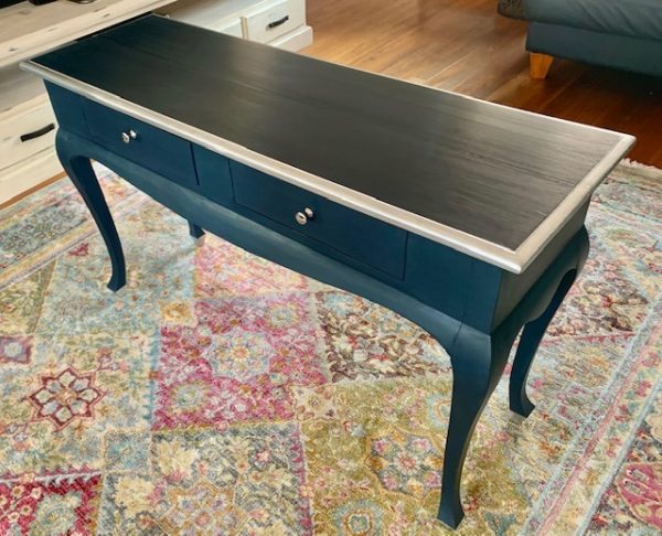 Upcycled Console / Side Table Annie Chalk Paint & Waxed Navy Blue & Silver Trim & Silver Toes…